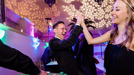Encourage your guests to enjoy the Christmas festivities with interactive office Christmas party games and activities, live dancers, casino tables, professional acrobats, and much, much more.