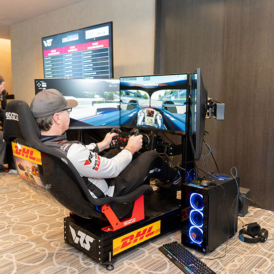 With two monitors for game display, a monitor on the wall for scores, and a branded racerback chair to use, the experience was immersive.
