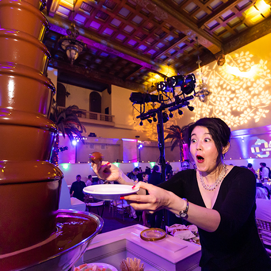 Guests got into the action with their choice of base dipped into the flowing edible fountain to coat their treat in warm chocolate.