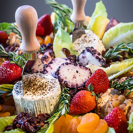 To start displays of charcuterie boards with imported and domestic cheese, meats, olives, fruit, nuts, honey, mustard, jams and crackers were a beautiful edible arrangement ready for the guests as they networked with cocktails.