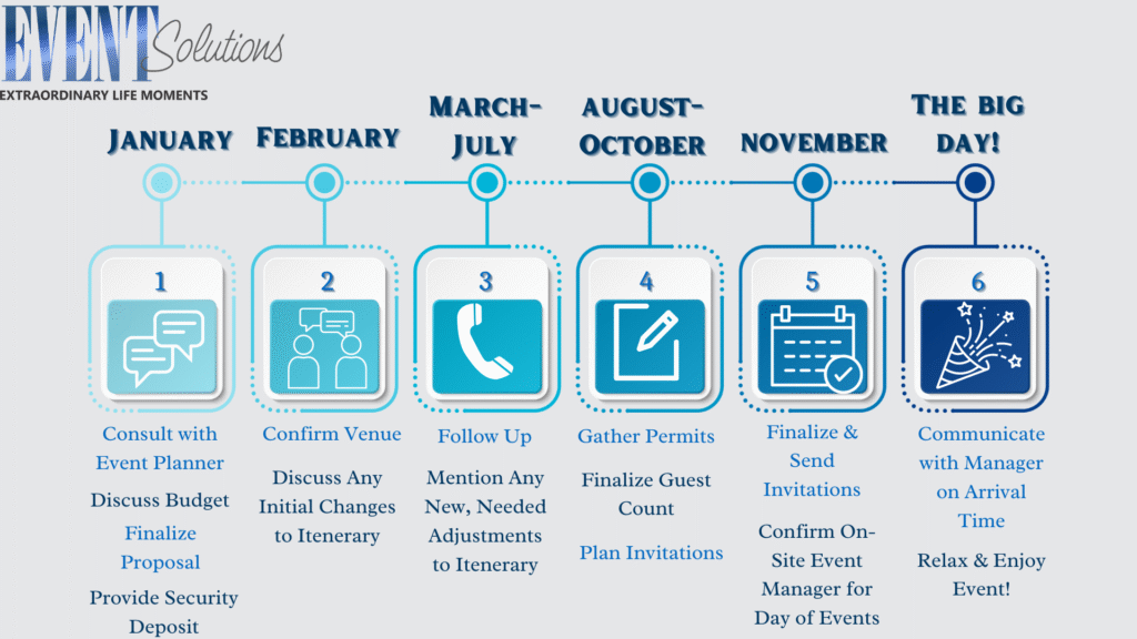 Sooner is always better to ensure that you get started as quickly as possible on the actual planning, which may include custom rentals, catering with dietary restrictions, or other specialized aspects for your party.