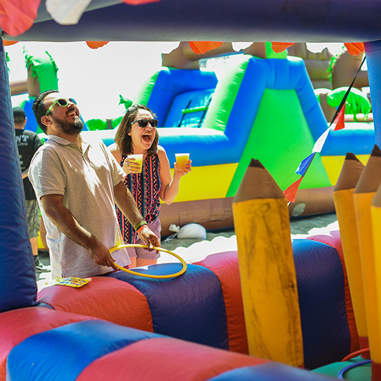 SOLUTION: We created a fully branded experience with immersive decor, beach-themed games, interactive creative stations, and gourmet catering. The event included MC-led activities and branded merchandise to ensure every detail was on-theme.