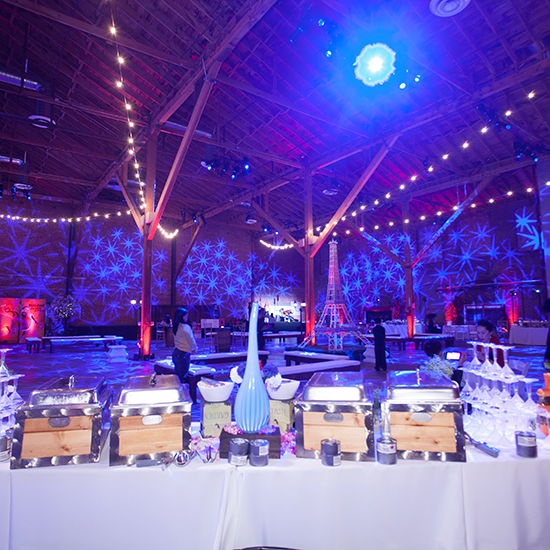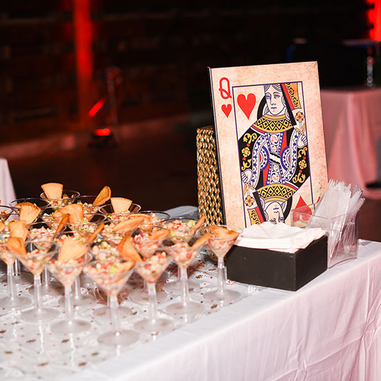 • Integrate food into the entertainment experience with action stations like nitro ice cream stations, made-to-order hibachi-style dishes, or cheese wheel pastas. See our top chef action station ideas and our catering food display ideas.